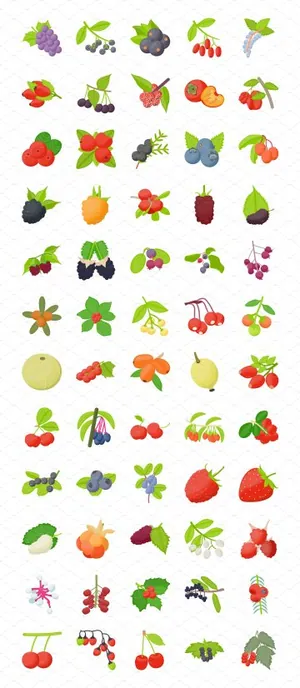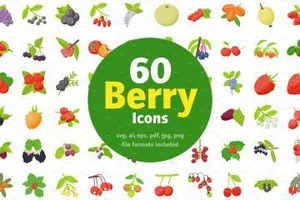 水果浆果矢量图标素材 60 Berry Fruits Flat Icons