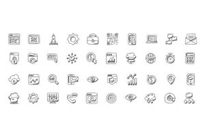 搜索引擎优化和营销涂鸦图标素材Seo and Marketing Doodle