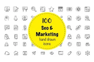 图穷联素材库 » 搜索引擎优化和营销涂鸦图标素材Seo and Marketing Doodle