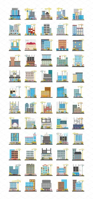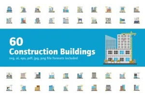 图穷联素材库 » 60个平面建筑图标素材Flat Construction Building Ic