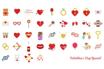 图穷联素材库 » 情人节扁平化图标 Valentine’s Day Flat Icons