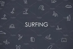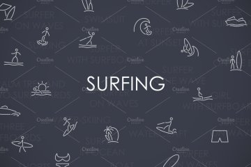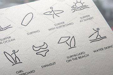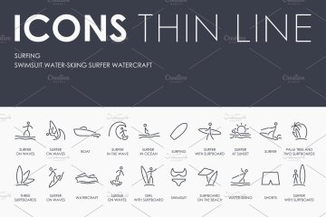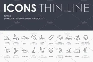 图穷联素材库 » 冲浪矢量图标素材 Surfing thinline icons