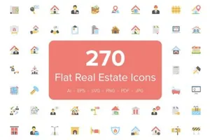 图穷联素材库 » 房产资产图标下载 270 Flat Real Estate Icons