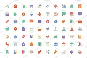 图穷联素材库 » 275 科学彩色图标 275 Science Colored Icons