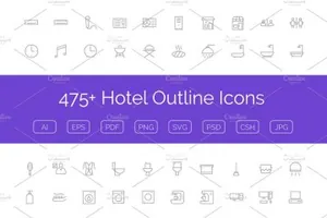 图穷联素材库 » 酒店矢量图标素材 475 Hotel Outline Icons