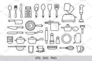 图穷联素材库 » 矢量厨房设备图标 33 vector kitchenware icons