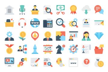 图穷联素材库 » 扁平化商业图标素材 370 Flat Business Icons