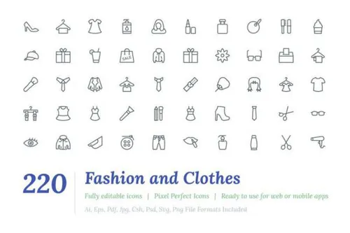 图穷联素材库 » 时尚时装和服装系列图标Fashion and Clothes Line Icon