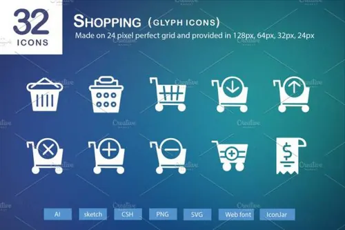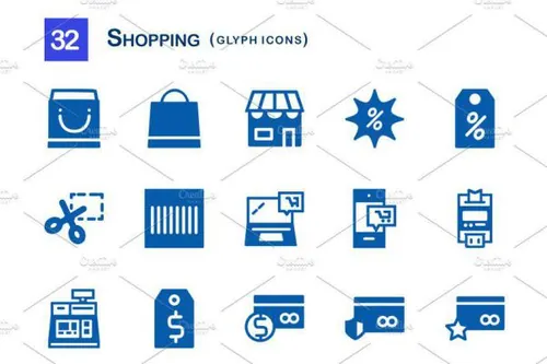图穷联素材库 » 购物车图标素材 32 Shopping Glyph Icons