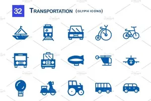 交通app图标素材 32 Transportation Glyph Icons