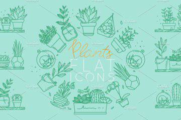 图穷联素材库 » 扁平化植物插画图标 Plants Flat Icons