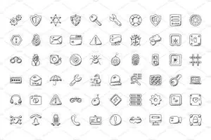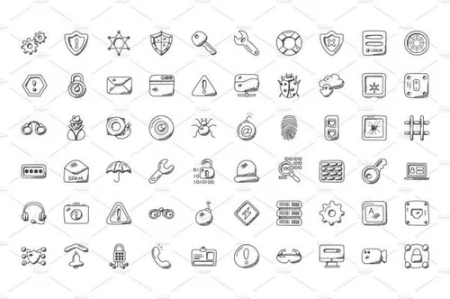 图穷联素材库 » 安全涂鸦图标素材 100 Security Doodle Icons