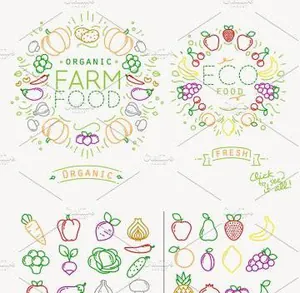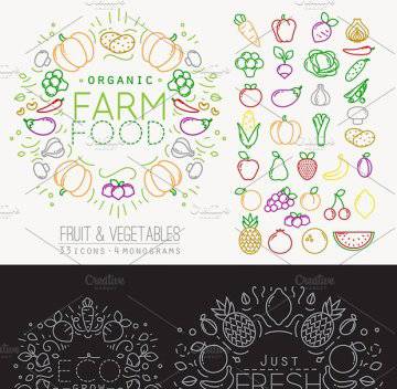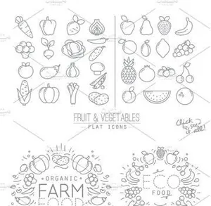 扁平化水果蔬菜图标设计 Flat Fruits amp;amp; Vegetab