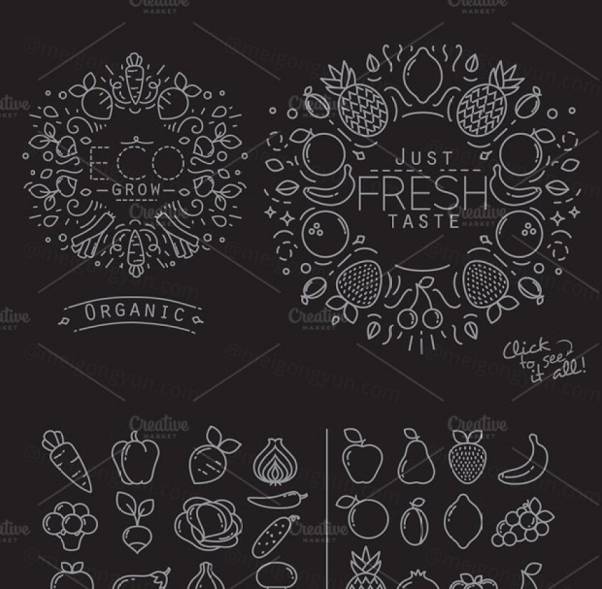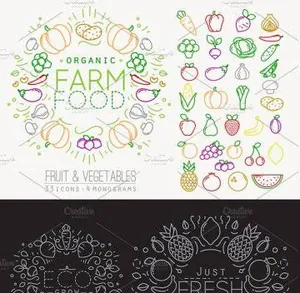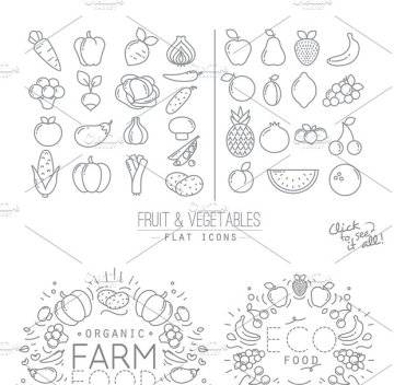 图穷联素材库 » 扁平化水果蔬菜图标设计 Flat Fruits amp;amp; Vegetab