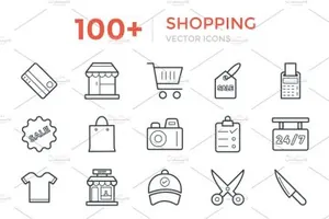 100 购物矢量图标设计 100 Shopping Vector Icons