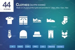 图穷联素材库 » 44个衣服字形图标 44 Clothes Glyph Icons