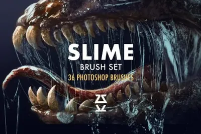 图穷联素材库 » 欧美恐怖巨兽口腔唾液身体粘液插画漫画CG原画PS笔刷素材 Slime brush set