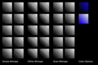 10 个抖动位图操作(100 dpi 到 10 dpi)