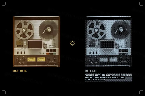 图穷联素材库 » 复古潮流怀旧8位像素风低保真图片特效PS动作素材 BitmapJoint Effect Action