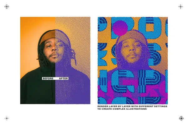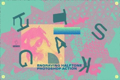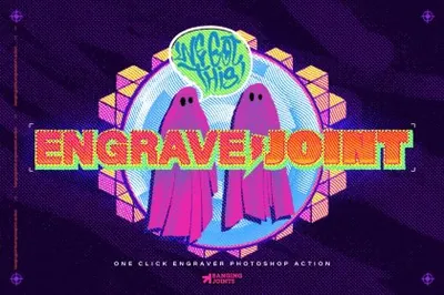 图穷联素材库 » 潮流复古艺术半色调条纹拼贴图片特效处理PS动作素材 EngraveJoint Effect Action