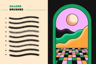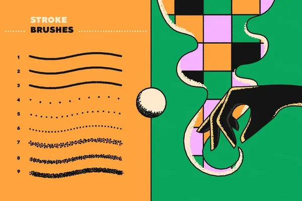 该系列包括27 种 Photoshop 笔刷,可以唤起最怀旧的情绪(这是由于我们使用波普艺术插图作为灵感)。共有9 种画笔类型,每种都提供三种样式:描边画笔、点画画笔和着色画笔,旨在将您的每一次创作努力转化为一件与众不同的当代艺术作品。是插图、海报、徽标、社论、广告还是其他任何东西——由您决定!