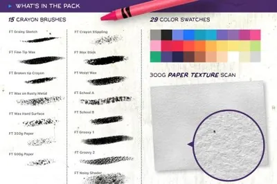 图穷联素材库 » 有趣的儿童怪异生物绘画iPad Procreate蜡笔笔刷素材 Crayon - Procreate Brush Pack