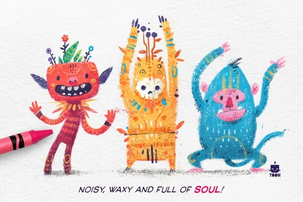 有趣的儿童怪异生物绘画iPad Procreate蜡笔笔刷素材 Crayon - Procreate Brush Pack