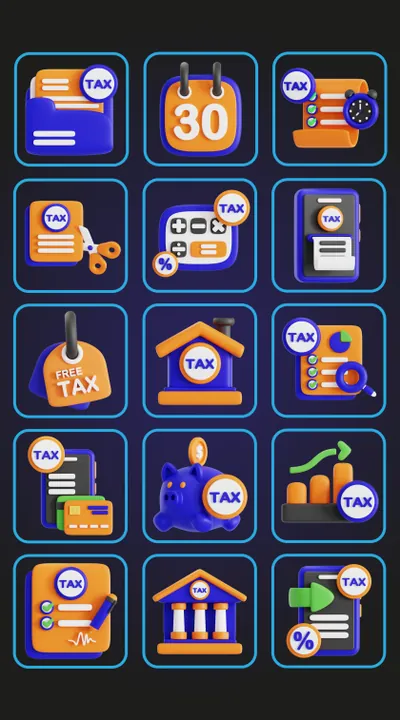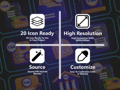 图穷联素材库 » 20款高质量三维渲染金融税务会记财务主题3D插画图标素材 Tax 3D Icon Set