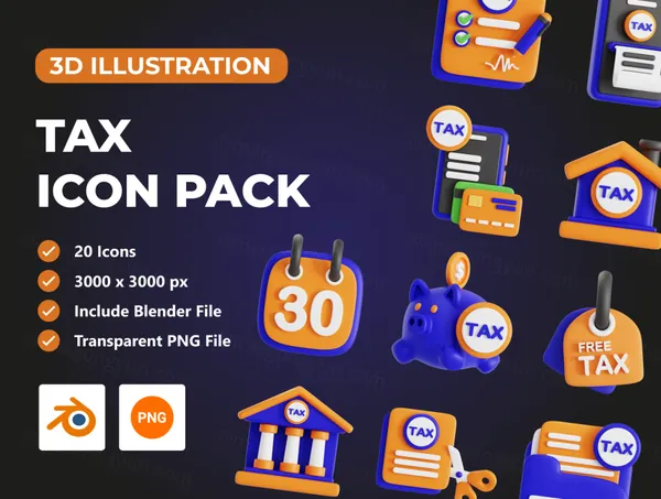20款高质量三维渲染金融税务会记财务主题3D插画图标素材 Tax 3D Icon Set