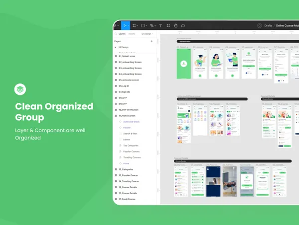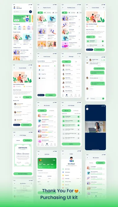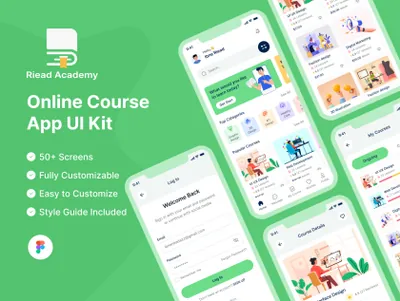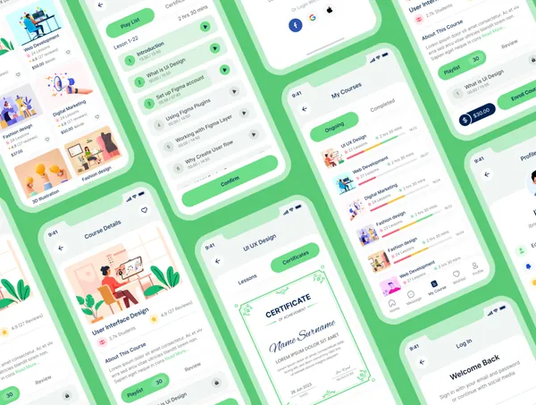 图穷联素材库 » 网校网络培训机构在线网课移动APP小程序界面UI素材 Online Course Mobile App UI Kit