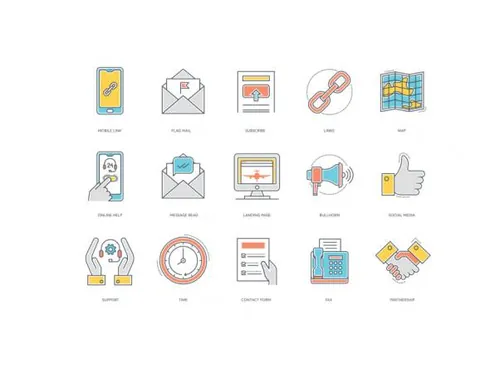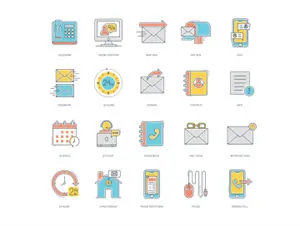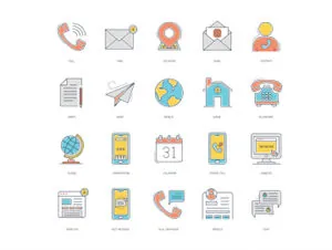 55联系相关的图标套装 Contact Us Color Line Icons