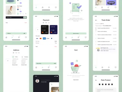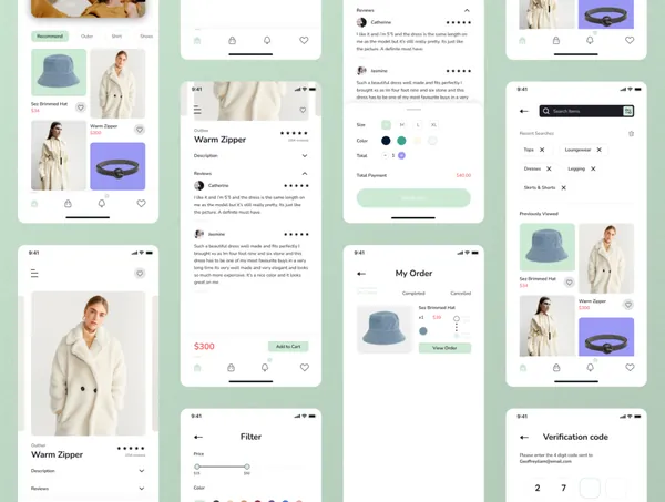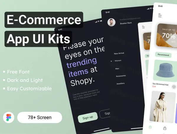 欧美极简电商平台商店移动APP界面UI素材 E-Commerce App UI Kits