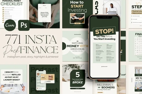 741 Instagram 财务包 + 30 个高亮图标 | CANVA PS(IG:@eviorystudio)