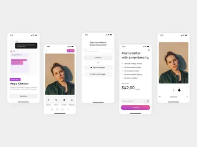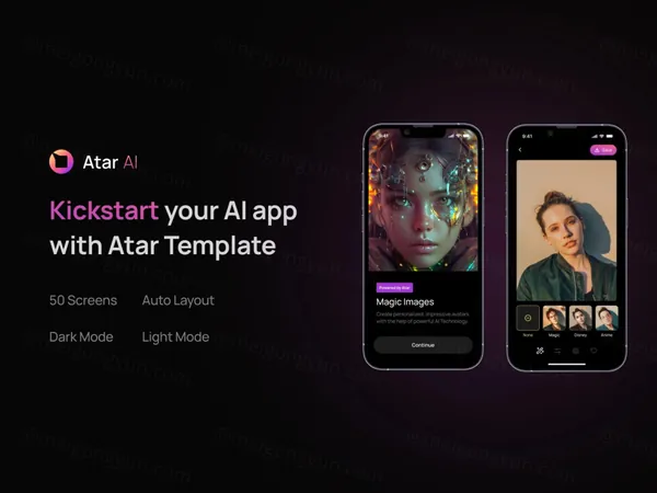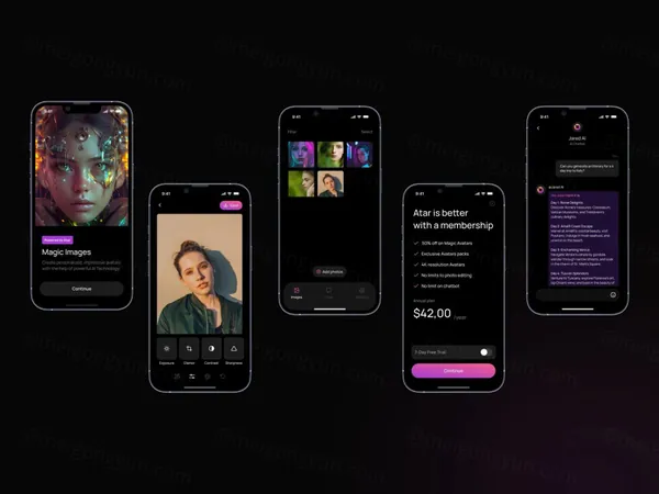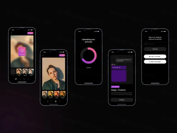 高质量尖端AI在线照片编辑器移动APP界面UI素材 Atar AI App Template