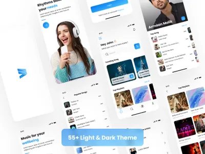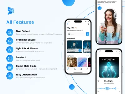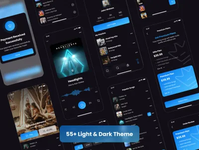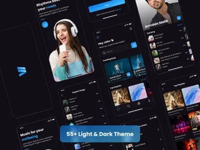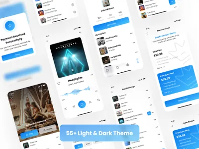 在这里,我将展示由 55+ 像素完美屏幕组成且易于在 Figma 中使用的 Music App UI Kit。