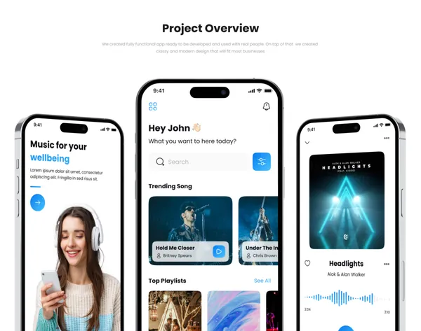 高质量iOS音乐移动APP应用程序界面设计UI素材 Music App UI Kit