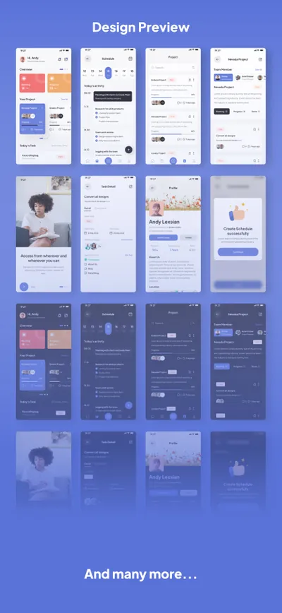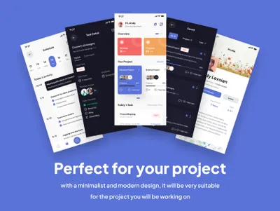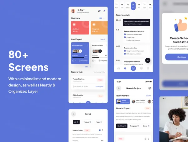 为具有 80 多个屏幕的任务管理器应用程序安排一个 Minimaslist 设计 UI 套件。