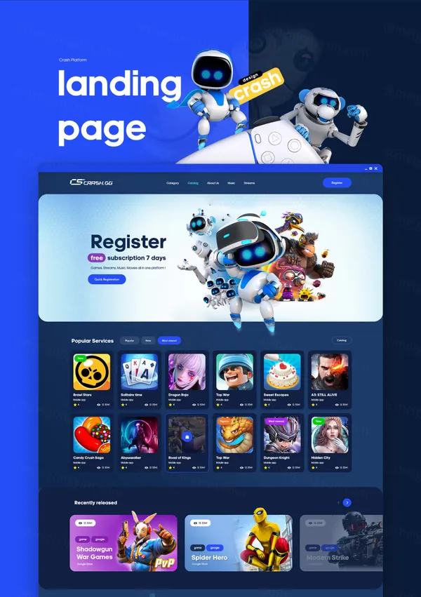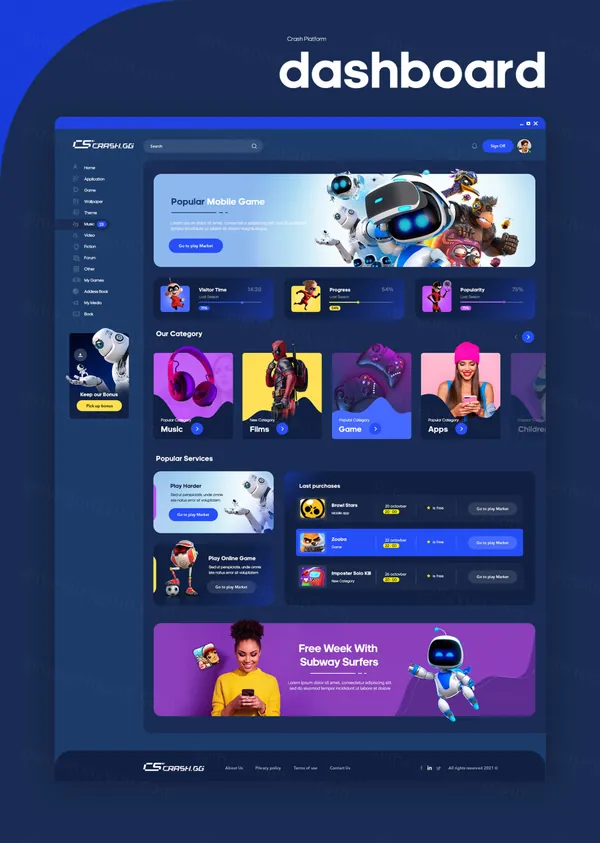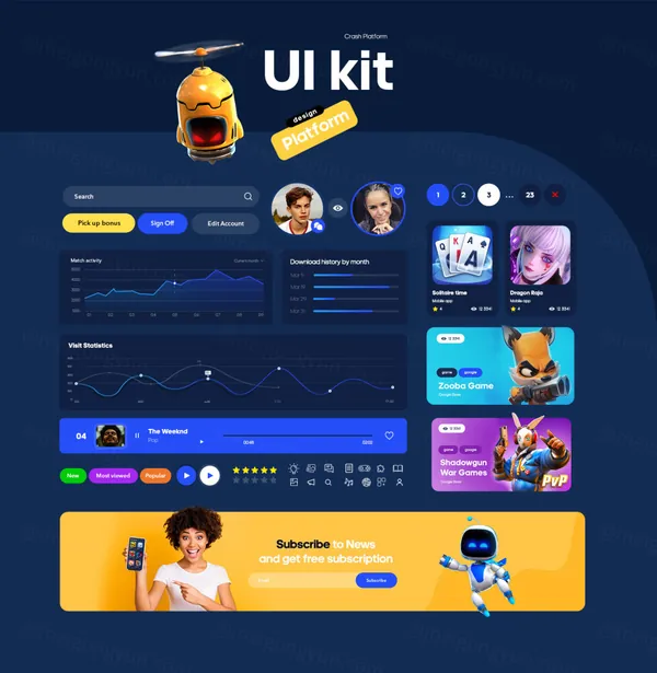 用于在计算机行业和音乐领域创建您自己的资源的 Crash UI 工具包。它适用于流媒体平台,下载电脑游戏和音乐录音,在线观看和收听。