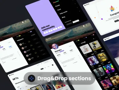 该软件包包括一个响应式且完全定制的登陆页面模板,带有 236 个干净且最小的预制屏幕。我们添加了许多不同的内容,以最大限度地增加布局选项的数量。拖放和混合不同的部分,即可在几分钟内快速构建您自己的 NFT 市场。