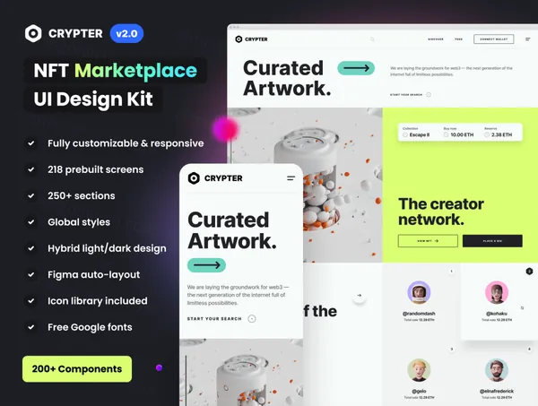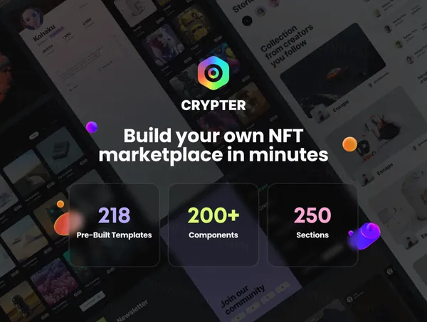 NFT数字交易市场区块链UI界面素材Web网站模板 Crypter V2 - NFT Marketplace UI Kit
