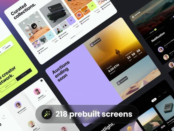 图穷联素材库 » NFT数字交易市场区块链UI界面素材Web网站模板 Crypter V2 - NFT Marketplace UI Kit