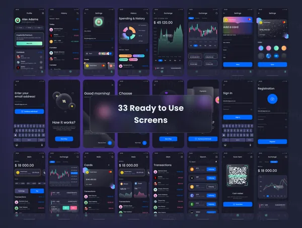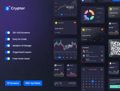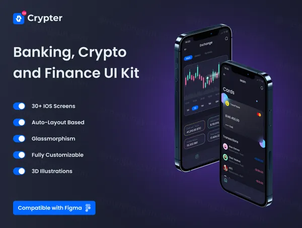 图穷联素材库 » 高质量银行股票虚拟加密货币iOS移动APP设计UI界面素材 Banking / Crypter UI Kit