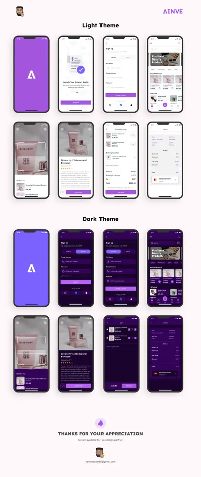 紫色女性美妆美容产品在线商城移动界面设计UI素材 Ainve Beauty Product App Design