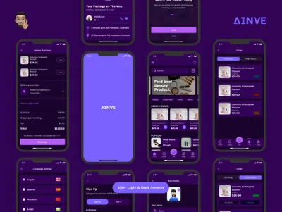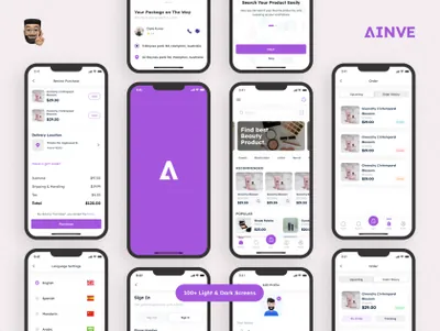 图穷联素材库 » 紫色女性美妆美容产品在线商城移动界面设计UI素材 Ainve Beauty Product App Design