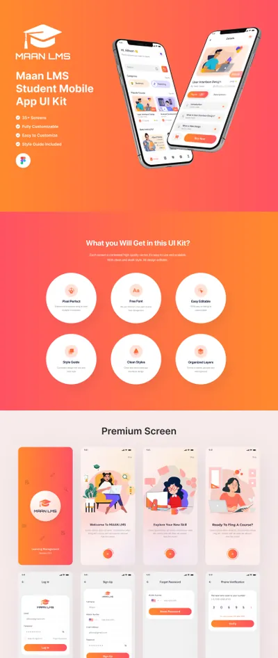 顾名思义,Maan LMS UI Kit 是一套主导且功能强大的 Flutter UI 套件,其中包含完整的应用程序模板、随时可用的小部件、代码片段(即现成的代码集成)和涵盖许多不同用例的令人惊叹的屏幕。最大的 Flutter UI 套件带有最新的材料设计。MaanLMS UI 模板以最高质量、易于重复使用的小部件、快速且完全用户友好的界面开发。您可以轻松地将它们集成到任何 Flutter 项目中。MaanLMS UI Kit 使开发人员可以轻松实现移动应用程序的现代外观。它可以节省您为现代使用的移动应用程序开发完美设计 UI 的麻烦和时间。