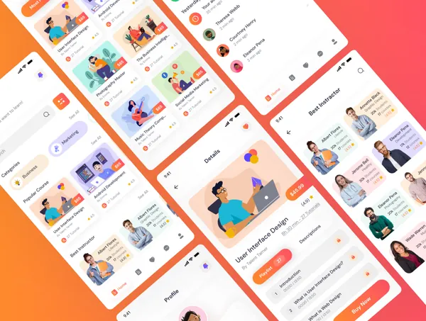 图穷联素材库 » 在线培训网校视频课程移动APP界面UI素材 Maan LMS - Student Mobile Flutter UI Kit