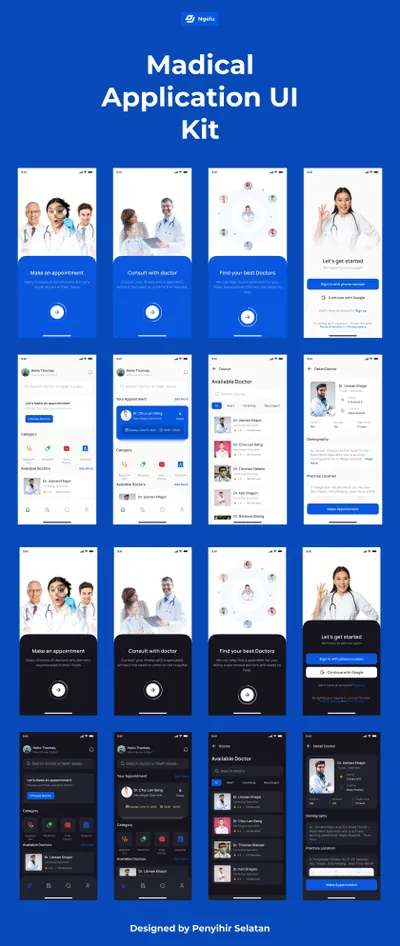 高质量医院挂号买药附近医院查找移动APP平台设计UI界面素材 Ngelu Medical