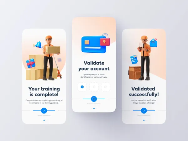 外卖物流快递闪屏导航界面移动APP概念程序UI素材免费分享 Delivery APP onboarding