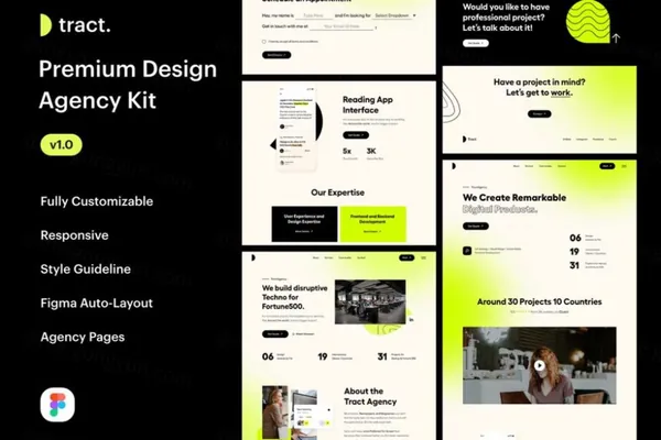 图穷联素材库 » 高质量潮流弥散光服务机构企业网站公司团队Web网页UI界面模板素材 Tract Agency