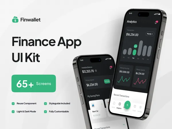 Finwallet 是金融移动应用程序 UI 套件,具有干净、整洁和现代的设计。Finwallet UI Kit 包含 65+ 高质量屏幕,35+ 亮模式和 35+ 暗模式。